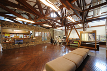 来館者へのインフォメーションスペースとして開放しています。屋久島に関するパンフレットなどが置いてあります。受付窓口では、短時間研修(当日申し込み可能)の受講受付や自然ライブラリーの利用受付などを行っています。