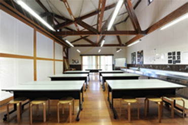 研修中の食事は、ここで行います。給湯器が設置してあり、お茶・水は自由に飲むことができます。テレビやピアノが置いてあります。