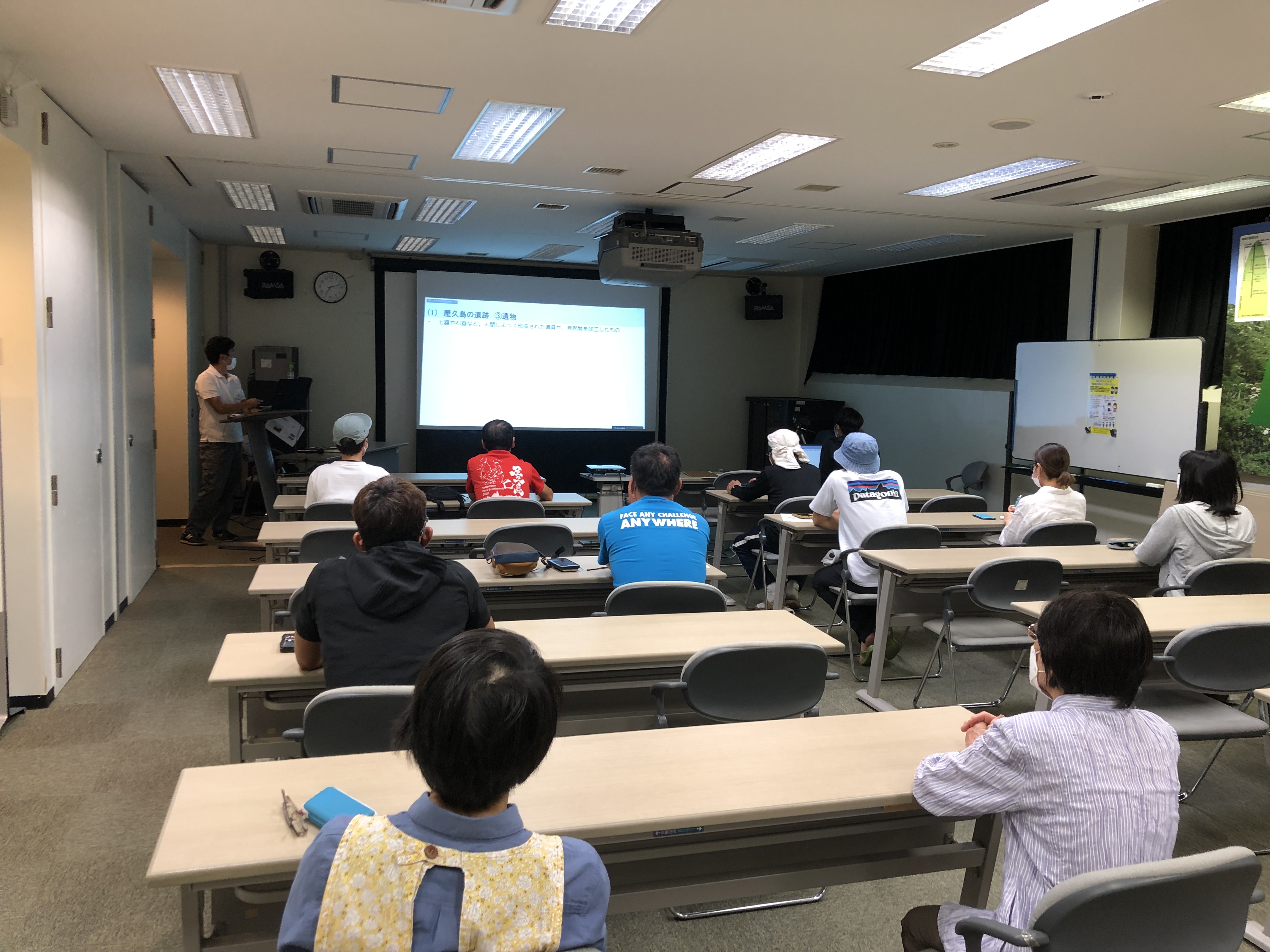 令和元年度から令和2年度にかけて屋久島町教育委員会によって発掘調査が行われた安房城跡に関して講座を開催しました。 発掘調査の方法・経緯や、出土した遺物・遺構等についてを写真を用いて解説いただきました。 建造した人物・利用目的等、不明な部分が多いが、戦や貿易の拠点として利用されていたことが推測されるとのことでした。