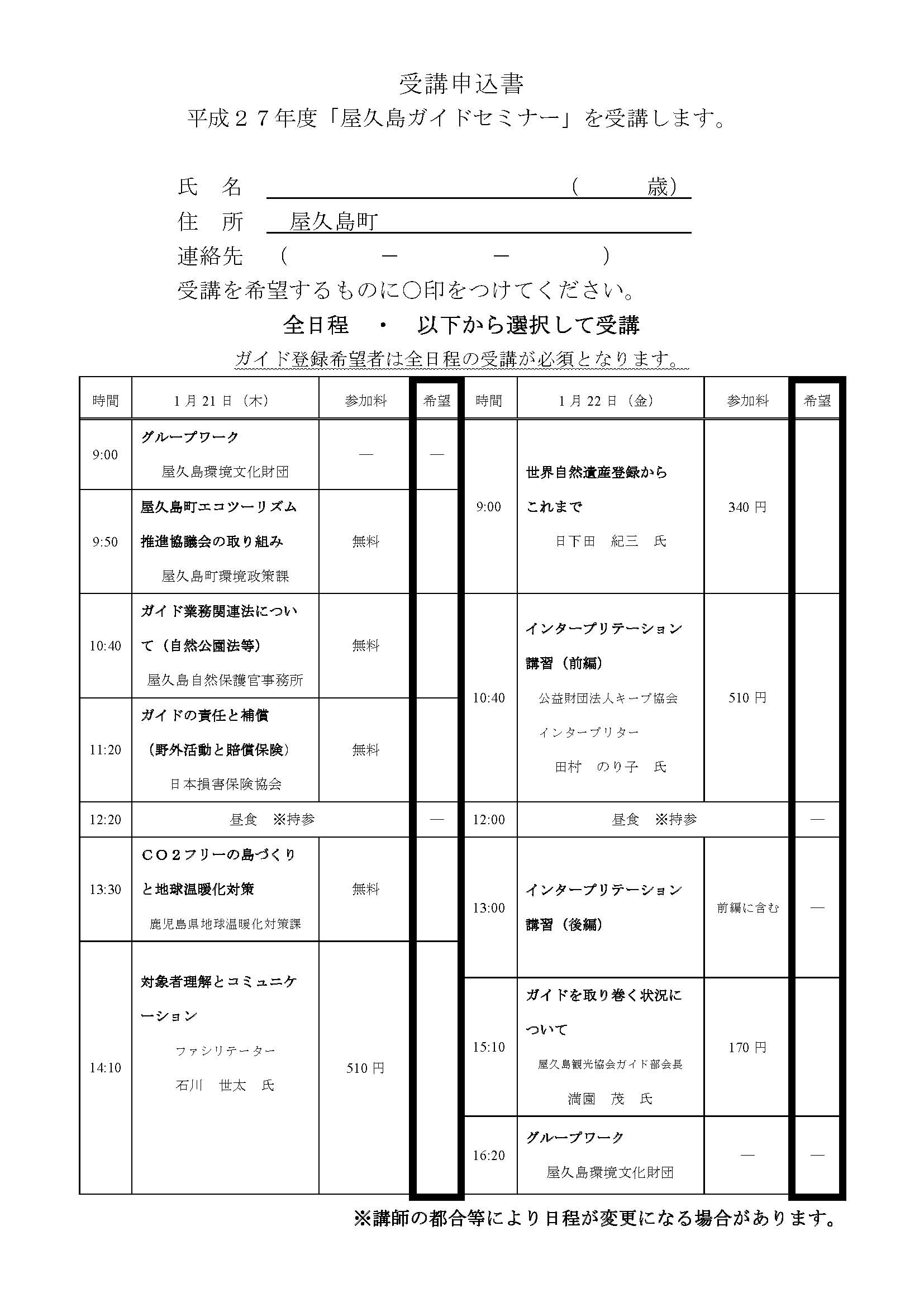 平成27年度「屋久島ガイドセミナー」を開催します。