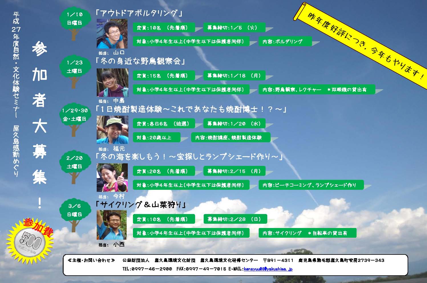 【参加者募集!】1月〜3月開催自然・文化体験セミナー全5回