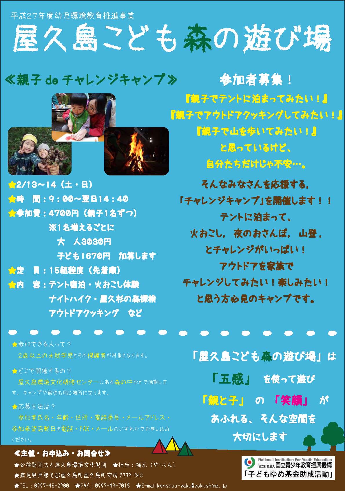 幼児対象〜親子deチャレンジキャンプ〜 参加者募集!