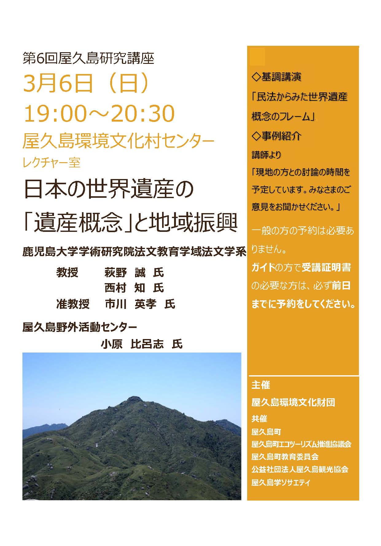 第6回屋久島研究講座の開催について