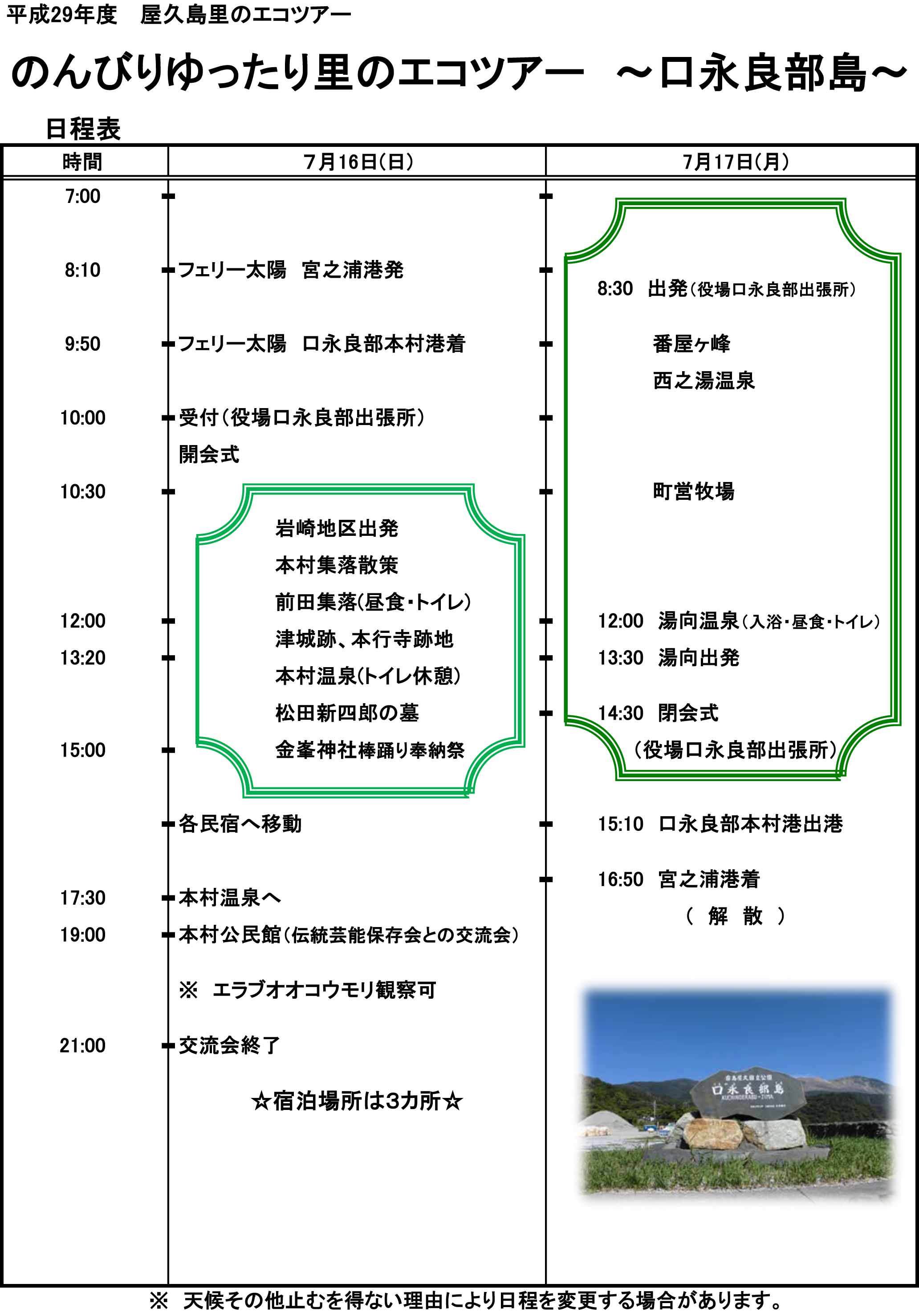 16日宮之浦港8:10発→本村港9:50着 17日本村港15:10発→宮之浦港16:50着
