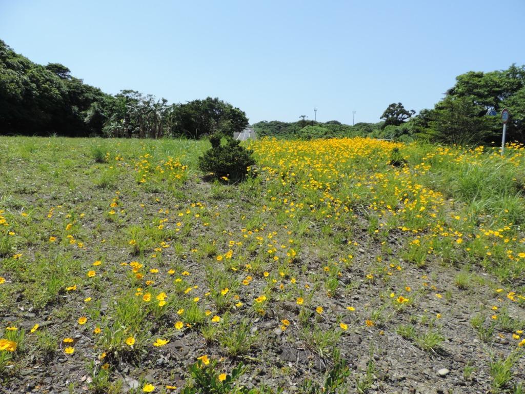 今屋久島の県道沿いにはコスモスに似た黄色い花がたくさん咲いています。