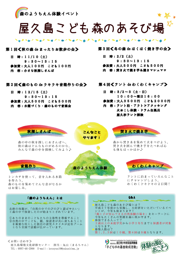 今年度も好評をいただいている屋久島こども森のあそび場を開催いたします。