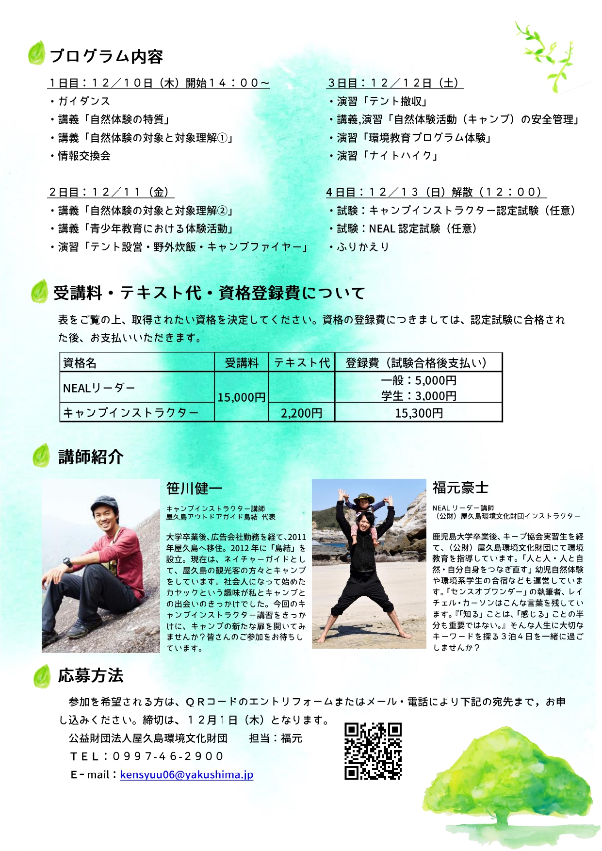 「野外活動指導者養成セミナー㏌屋久島」参加者募集!