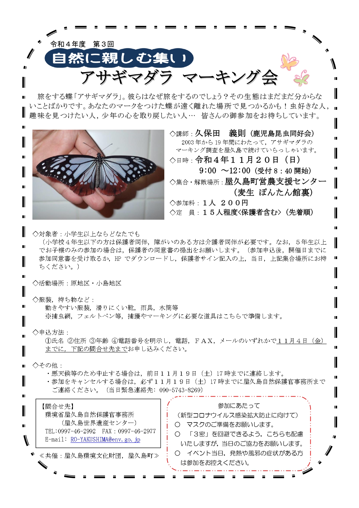 第3回自然に親しむ集い~アサギマダラマーキング会~