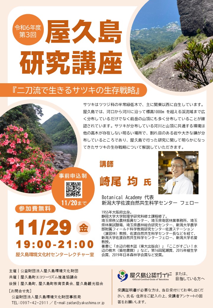 令和6年度第3回屋久島研究講座を以下のとおり開催します。