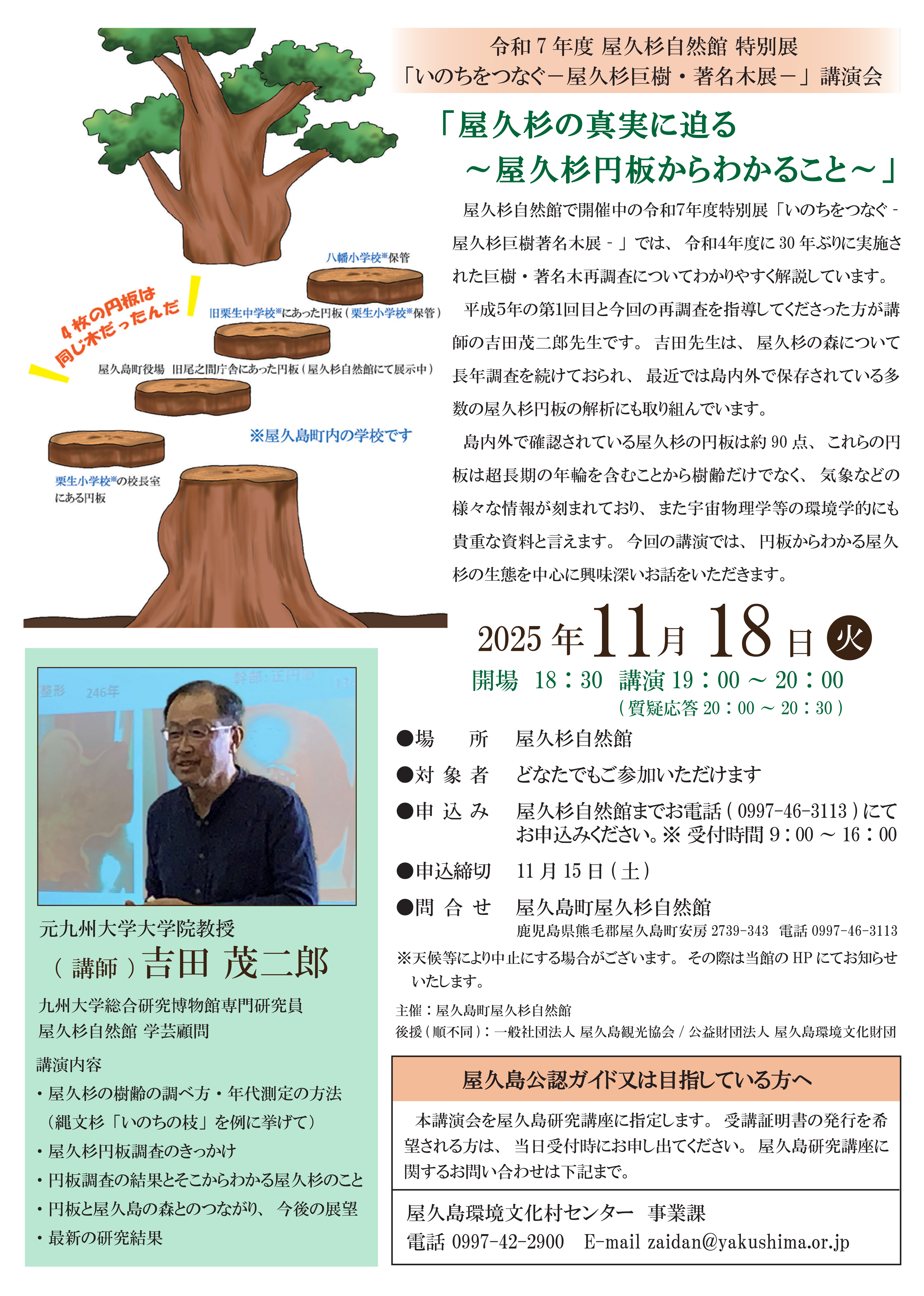 下記のURL、もしくは屋久杉自然館までご連絡ください。