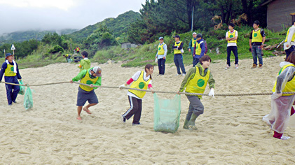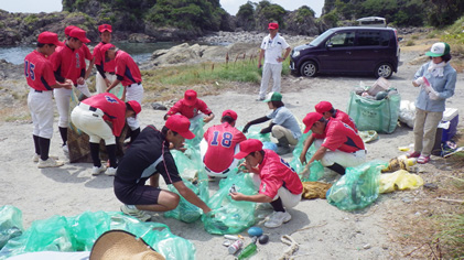 環境保全(海岸清掃)海岸の清掃を行っております。写真はその様子です。